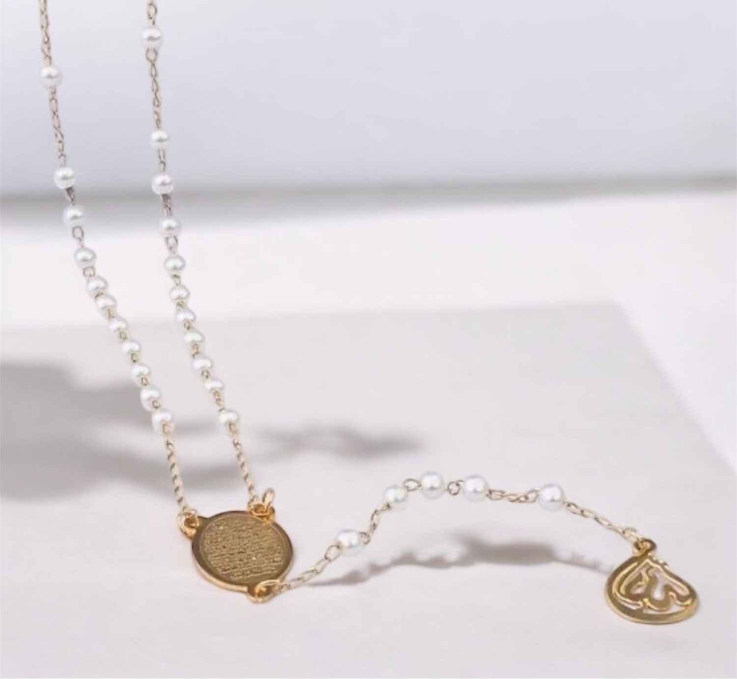 White Bead Ayatul Kursi Necklace - Gold Plated